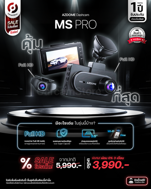 Azdome MS PRO - กล้องหน้า/หลังคุณภาพสูง มาพร้อมกับระบบภาพ Full HD แท้ ทั้งหน้าและหลัง ให้ความคมชัดภาพที่ดีใช้งานได้ทุกสถาณการณ์ อีกทั้งยังมี GPS ในตัวและ Wi-Fi เชื่อมต่อมือถือได้ แบตที่ทนร้อนสูง ครบต่อการใช้งาน