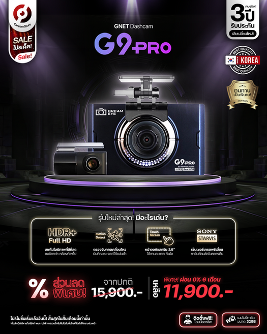 GNET G9 PRO - กล้องหน้า/หลังเกรดพรีเมี่ยมจากเกาหลีที่มีหน้าจอทัชสกรีน 3.5" ใช้งานง่าย ความคมชัดภาพระดับ Full HD และมีเทคโนโลยี HDR+ ทำให้ได้ภาพกลางวันกลางคืนที่คมชัดน่าใช้งาน มีฟังก์ชั่นการทำงานที่ครบครันสุดๆ